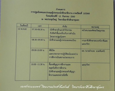 กำหนดการ การปฐมนิเทศและประชุมผู้ปกครอง นักเรียน นักศึกษาฝึกงาน