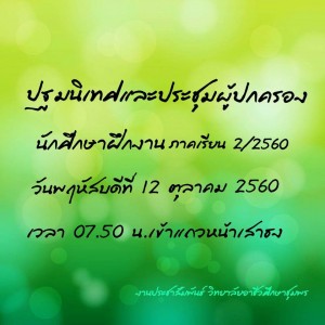 ปฐมนิเทศและประชุมผู้ปกครอง นักศึกษาฝึกงาน ภาคเรียนที่ 2 ปีการศึกษา 2560 วันพฤหัสบดีที่ 12 ตุลาคม 2560