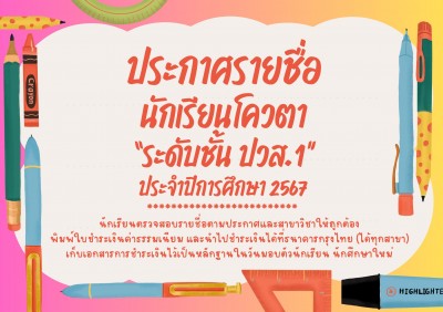 📣 ประกาศรายชือนักเรียนโควตา ระดับ ปวช. ประจำปีการศึกษา 2567