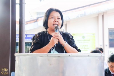 นางสาวจีรา แกล้วกล้า ครูประจำแผนกการบัญชี ได้ขึ้นพบปะและเชิญชวนร่วมให้กำลังใจแก่นักเรียน นักศึกษา