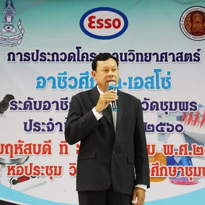 วันนี้ (6 ก.ค.2560) ที่หอประชุมใหญ่ วิทยาลัยอาชีวศึกษาชุมพร นายอำนวย นวลจันทร์ ประธานกรรมการอาชีวศึกษาจังหวัดชุมพร เป็นประธานพิธีเปิดการประกวดโครงงานวิทยาศาสตร์อาชีวศึกษา