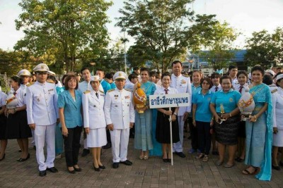 นายอนุศิษฎ์ แสงสว่าง รองผู้อำนวยการวิทยาลัยอาชีวศึกษาชุมพร พร้อมด้วย ครู นักเรียน นักศึกษา วิทยาลัยอาชีวศึกษาชุมพร ร่วมพิธีจุดเทียนถวายพระพรชัยมงคล