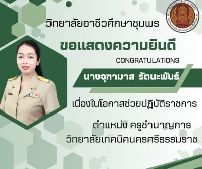 วิทยาลัยอาชีวศึกษาชุมพร ขอแสดงความยินดีกับ นายณรงค์ชัย เจริญรุจิทรัพย์