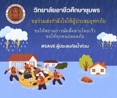 วิทยาลัยอาชีวศึกษาชุมพร ขอร่วมส่งกำลังใจให้ผู้ประสบอุทกภัย ทุกพื้นที่ ขอให้เหตุการณ์ผ่านพ้นไปโดยเร็ว และขอให้ทุกคนปลอดภัย