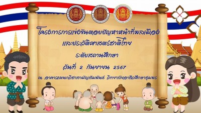 ขอเชิญ คณะผู้บริหาร คณะครู บุคลากรทางการศึกษา และนักเรียน นักศึกษาเข้าร่วม โครงการแข่งขันตอบปัญหาหน้าที่พลเมืองและประวัติศาสตร์ชาติไทย