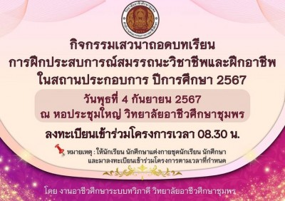 การฝึกประสบการณ์สมรรถนะวิชาชีพและฝึกอาชีพในสถานประกอบการ ปีการศึกษา 2567