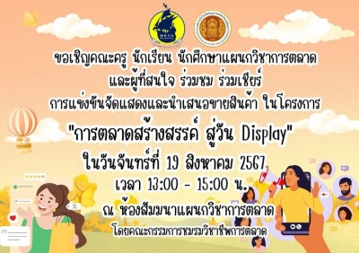 🎉ประชาสัมพันธ์🎉 📍ขอเชิญคณะครูนักเรียน นักศึกษา แผนกวิชาการตลาด เข้าร่วมโครงการ 'การตลาดสร้างสรรค์ สู่วัน Display'
