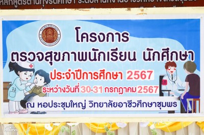 นางมนิดา พรหมนิมิตร และ นายธีระยุทธ เหมือนวงษ์ รองผู้อำนวยการวิทยาลัยอาชีวศึกษาชุมพร เข้าเยี่ยมชมโครงการ 'ตรวจสุขภาพนักเรียน นักศึกษา ประจำปีการศึกษา 2567'