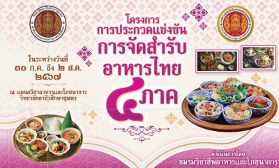 ดร.ณรงค์ แก้วสิงห์ ผู้อำนวยการวิทยาลัยอาชีวศึกษาชุมพร มอบหมายให้ นางจิราภร อเนกศุภพล รองผู้อำนวยการฯ ฝ่ายบริาหรทรัพยากร เป็นประธานในพิธีเปิดโครงการกิจกรรม การจัดสำรับอาหารไทย 4 ภาค