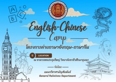 ดร.ณรงค์ แก้วสิงห์ ผู้อำนวยการวิทยาลัยอาชีวศึกษาชุมพร ให้เกียรติเป็นประธานในพิธีเปิดโครงการค่ายภาษาอังกฤษ - ภาษาจีน English - Chinese Camp