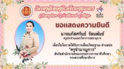 วิทยาลัยอาชีวศึกษาชุมพร ขอแสดงความยินดีกับ