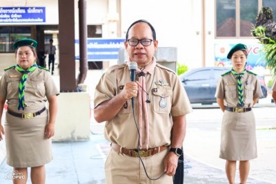 ดร.ณรงค์ แก้วสิงห์ ผู้อำนวยการวิทยาลัยอาชีวศึกษาชุมพร ให้เกียรติกล่าวต้อนรับคณะวิทยากร และเยี่ยมชมการจัดกาเรรียนการสอน รายวิชา ลูกเสือวิสามัญ