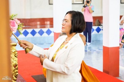 ดร.ณรงค์ แก้วสิงห์ ผู้อำนวยการวิทยาลัยอาชีวศึกษาชุมพร พร้อมคณะผู้บริหาร คณะครู และตัวแทนนักเรียน นักศึกษา แผนกวิชาการบัญชี ร่วมกิจกรรมทำบุญตักบาตรถวายพระราชกุศล