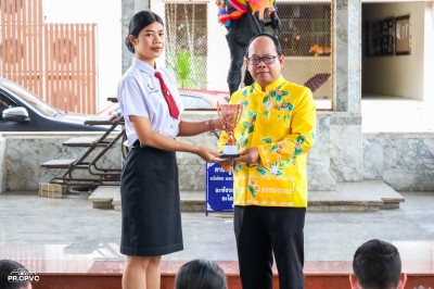 ดร.ณรงค์ แก้วสิงห์ ผู้อำนวยการวิทยาลัยอาชีวศึกษาชุมพร ให้เกียรติมอบเกียรติบัตรและถ้วยรางวัล แก่นักเรียนที่เข้าร่วมการแข่งขันการผสมเครื่องดื่มประกอบลีลา