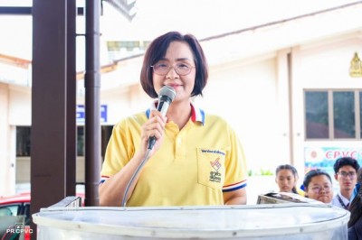 นางจิราภร อเนกศุภพล รองผู้อำนวยการวิทยาลัยอาชีวศึกษาชุมพร ฝ่ายบริหารทรัพยากร ได้ขึ้นพบปะและให้คำแนะนำแก่นักเรียน นักศึกษา ในกิจกรรมหน้าเสาธง