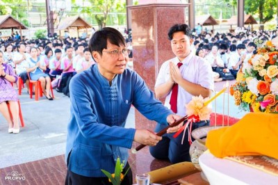 ดร.พัฒนกิจ วงค์ลาศ รองผู้อำนวยการวิทยาลัยอาชีวศึกษาชุมพร ร่วมกับคณะผู้บริหาร คณะครู บุคคลกรทางการศึกษา และนักเรียน นักศึกษา วิทยาลัยอาชีวศึกษาชุมพร ร่วมสวดมนต์ทำนองสรภัญญะ ในวันพระขึ้น 8 ค่ำ เดือน 7