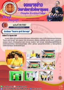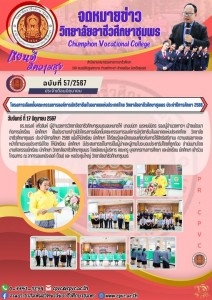 ดร.ณรงค์ แก้วสิงห์ ผู้อำนวยการวิทยาลัยอาชีวศึกษาชุมพรมอบหมายให้ นางมนิดา พรหมนิมิตร รองผู้อำนวยการฯ ฝ่ายพัฒนากิจการนักเรียน นักศึกษา