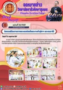 ดร.ณรงค์ แก้วสิงห์ ผู้อำนวยการวิทยาลัยอาชีวศึกษาชุมพร พร้อมคณะผู้บริหาร คณะครู และตัวแทนนักเรียน นักศึกษา แผนกวิชาอาหารและโภชนาการ ร่วมกิจกรรมทำบุญตักบาตรถวายพระราชกุศล