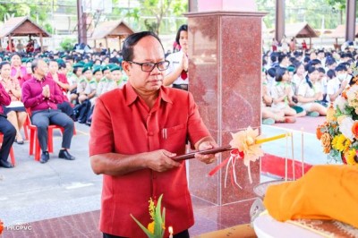ดร.ณรงค์ แก้วสิงห์ ผู้อำนวยการวิทยาลัยอาชีวศึกษาชุมพร ร่วมกับคณะผู้บริหาร คณะครู บุคคลกรทางการศึกษา และนักเรียน นักศึกษา วิทยาลัยอาชีวศึกษาชุมพร