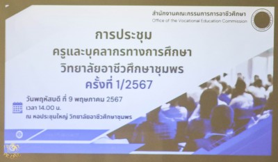 ปฐมนิเทศและเสริมสร้างคุณธรรม จริยธรรม นักศึกษาใหม่ ระดับชั้น ปวส.1 ประจำปีการศึกษา 2567 ณ หอประชุมใหญ่ วิทยาลัยอาชีวศึกษาชุมพร