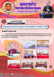 📮จดหมายข่าว ประจำเดือนพฤาภาคม พ.ศ.2567 - ฉบับที่ 51/2567 📌ปฐมนิเทศและเสริมสร้างคุณธรรม จริยธรรม นักเรียนใหม่ ระดับชั้น ปวช.1 ประจำปีการศึกษา 2567 ณ หอประชุมใหญ่ วิทยาลัยอาชีวศึกษาชุมพร