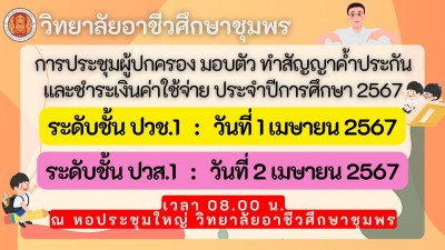 📣ประกาศ เรื่อง การประชุมผู้ปกครอง มอบตัวและทำสัญญาค้ำประกัน การเป็นนักเรียน นักศึกษา ประจำปีการศึกษา 2567