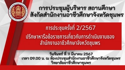 การประชุมปรึกษาหารือข้อราชการเกี่ยวกับการดำเนินงานของสำนักงานอาชีวศึกษาจังหวัดชุมพร ครั้งที่ 2/2567