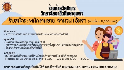 📣ประกาศ เรื่อง ร้านค้าสวัสดิการ วิทยาลัยอาชีวศึกษาชุมพร รับสมัครพนักงานขาย