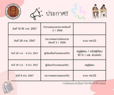 📣ประกาศ เรื่อง ปฏิทินงานวัดผลและประเมินผล วิทยาลัยอาชีวศึกษาชุมพร ประจำภาคเรียนที่ 2 ปีการศึกษา 2566🖋📙