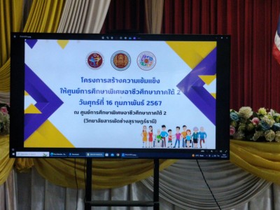 ดร.ณรงค์ แก้วสิงห์ ผู้อำนวยการวิทยาลัยอาชีวศึกษาชุมพร พร้อมด้วย นางมนิดา พรหมนิมิตร รองผู้อำนวยการ ฝ่ายพัฒนากิจการนักเรียน นักศึกษา และนางจรินทร์ยา ยวงนาค ครู วิทยาลัยอาชีวศึกษาชุมพร เข้าร่วมโครงการสร้างความเข้มแข็งให้ศูนย์การศึกษาพิเศษอาชีวศึกษาภาคใต้ 2
