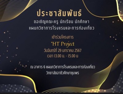 ขอเชิญคณะครู นักเรียน นักศึกษา แผนกวิชาการโรงแรมและการท่องเที่ยว เข้าร่วมโครงการ 'HT Project'