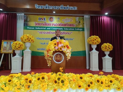 ดร.ณรงค์ แก้วสิงห์ ผู้อำนวยการวิทยาลัยอาชีวศึกษาชุมพร มอบหมาย นางจิราภร อเนกศุภพล รองผู้อำนวยการวิทยาลัยอาชีวศึกษาชุมพร ฝ่ายบริหารทรัพยากร เป็นประธานในพิธีเปิดโครงการศาสตร์และศิลป์