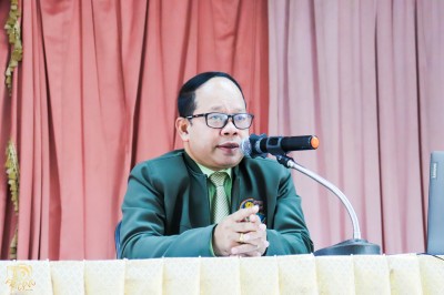 นายธำรงค์ สว่างเดือน อดีตผู้อำนวยการ วิทยาลัยเทคนิคนนทบุรี บรรยายสร้างองค์ความรู้ในสิ่งประดิษฐ์ ณ วิทยาลัยอาชีวศึกษาชุมพร