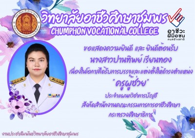 🎊วิทยาลัยอาชีวศึกษาชุมพร ขอแสดงความยินดี และ ยินดีต้อนรับ 🎊 นางสาวปานทิพย์ เรียนทอง ได้รับบรรจุแต่งตั้งเป็นข้าราชครู