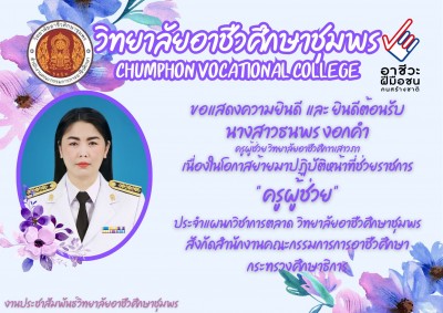 🎊วิทยาลัยอาชีวศึกษาชุมพร ขอแสดงความยินดี และ ยินดีต้อนรับ 🎊 นางสาวธนพร งอกคำ ครูผู้ช่วย วิทยาลัยอาชีวศึกษาเสาวภา ในการย้ายมาปฏิบัติหน้าที่ช่วยราชการ