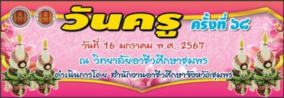 สำนักงานอาชีวศึกษาจังหวัดชุมพร💐 จัดกิจกรรม 'วันครู 🧑🏫ครั้งที่ 68 ประจำปี 2567' ในวันที่ 16 มกราคม 2567 ณ วิทยาลัยอาชีวศึกษาชุมพร ✨