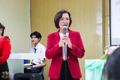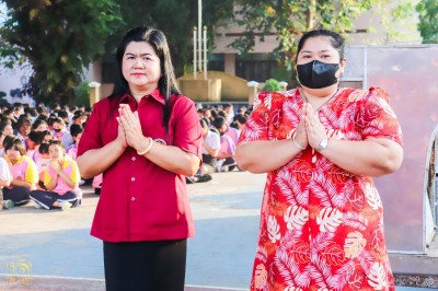 นางมนิดา พรหมนิมิตร ร่วมสวดมนต์ในวันพระแรม 8 ค่ำ เดือน 2 ณ ลานอเนกประสงค์ (โดม) วิทยาลัยอาชีวศึกษาชุมพร และชมรมภาษาต่างประเทศจัดกิจกรรมการพูดและทักทายในภาษาอังกฤษและจีน