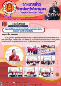 ผู้อำนวยการวิทยาลัยอาชีวศึกษาชุมพร เป็นประธานในการประชุมเตรียมความพร้อมให้บริการการทดสอบวัดสมรรถนะครูทางด้านวัดผลและประเมินผลการเรียนรู้ และทดสอบภาษาอังกฤษเพื่อการสื่อสารในการทำงาน
