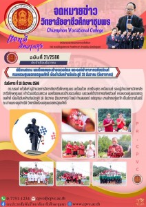 ผู้อำนวยการวิทยาลัยอาชีวศึกษาชุมพร พร้อมด้วยรองผู้อำนวยการวิทยาลัยอาชีวศึกษาชุมพร ฝ่ายวิชาการ ร่วมเยี่ยมชมและให้กำลังใจแก่ผู้เข้ารับการทดสอบวัดสมรรถนะครูทางด้านวัดผลและประเมินผลการเรียนรู้ และทดสอบภาษาอังกฤษเพื่อการสื่อสารในการทำงาน (TEC-W) ครั้งที่ 1