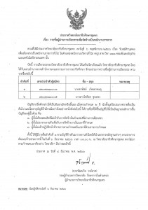 ประกาสผู้ผ่านการเลือกสรรเพื่อจัดจ้างเป็นพนักงานราชการ ตำแหน่งพนักงานบริหารทั่วไป (ครู)