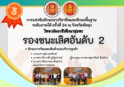 วิทยาลัยอาชีวศึกษาชุมพรขอแสดงความยินดีกับแผนกวิชาการตลาด ที่คว้า #รางวัลรองชนะเลิศอันดับ2 🏆