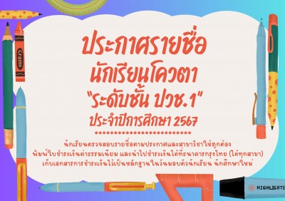 ประกาศรายชือนักเรียนโควตา ระดับ ปวช. ประจำปีการศึกษา 2567