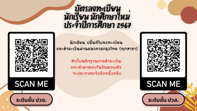 บัตรลงทะเบียนนักเรียน นักศึกษาใหม่ (รอบโควตา) ประจำปีการศึกษา 2567 ระหว่างวันที่ 28 พฤศจิกายน 2566 - 10 ธันวาคม 2566