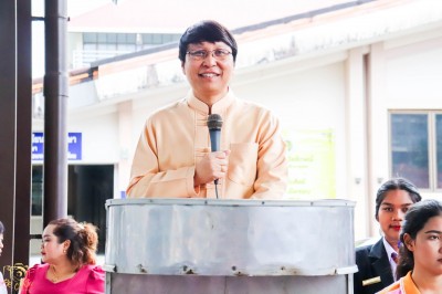 ครูประจำแผนกวิชาอาหารและโภชนาการครูประจำแผนกวิชาสามัญสัมพันธ์ ได้ขึ้นพบปะและให้คำแนะนำแก่นักเรียน นักศึกษา ในกิจกรรมหน้าเสาธง