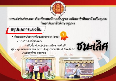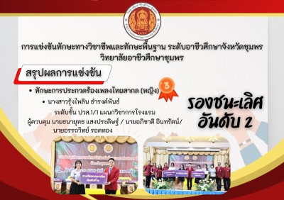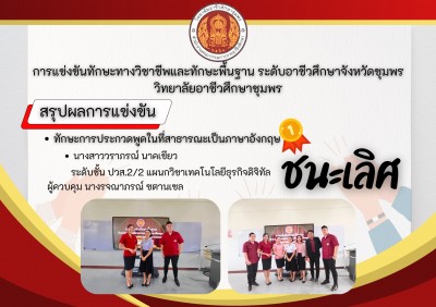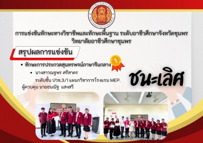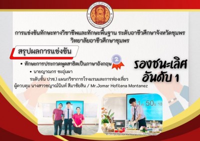 ขอแสดงความยินดีกับนักเรียน ที่คว้ารางวัลรองชนะเลิศอันดับ 1 ในการแข่งขันทักษะการประกวดพูดสาธิตเป็นภาษาอังกฤษ
