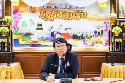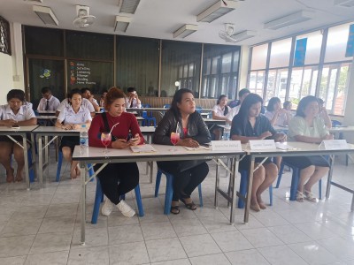 ครูประจำแผนกวิชาการเลขานุการ ได้ขึ้นพบปะและให้คำแนะนำแก่นักเรียน นักศึกษา ในกิจกรรมหน้าเสาธง