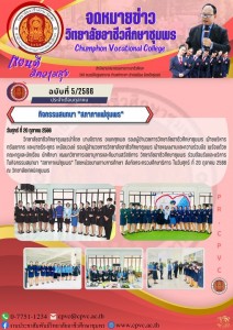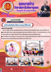 ผู้อำนวยการวิทยาลัยอาชีวศึกษาชุมพร มอบหมายให้รองผู้อำนวยการวิทยาลัยอาชีวศึกษาชุมพร เป็นประธานในการประชุมแต่งตั้งคณะกรรมการดำเนินงาน เตรียมรับการประเมินผลการดำเนินงานธุรกิจโกลบาร์