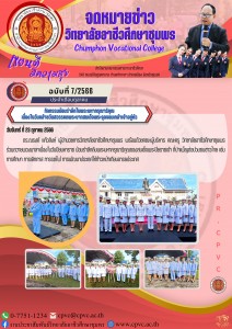 ผู้อำนวยการวิทยาลัยอาชีวศึกษาชุมพร พร้อมด้วยคณะผู้บริหาร คณะครู วิทยาลัยอาชีวศึกษาชุมพร ร่วมถวายพวงมาลาเนื่องในวันปิยมหาราช