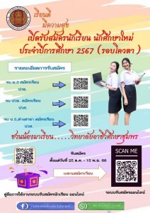 เปิดรับสมัครนักเรียน นักศึกษาใหม่ ประจำปีการศึกษา 2567 (รอบโควตา)