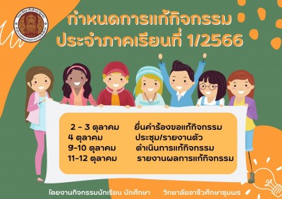 ประกาศ เรื่อง กำหนดการแก้กิจกรรม ประจำภาคเรียนที่ 1/2566